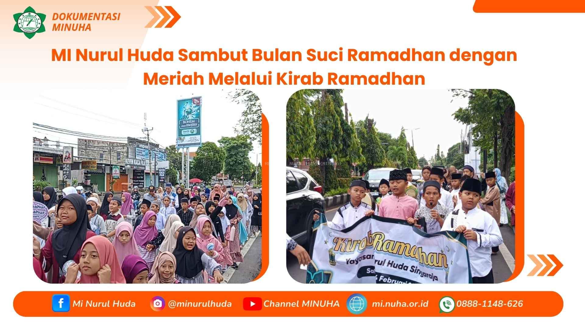 Dalam rangka menyambut datangnya bulan suci Ramadhan, MI Nurul Huda menggelar kegiatan Kirab Ramadhan yang berlangsung dengan penuh semangat, kebersamaan, dan nuansa religius. Kegiatan ini menjadi salah satu bentuk syiar Islam sekaligus upaya menanamkan kecintaan terhadap bulan suci Ramadhan kepada peserta didik sejak dini.